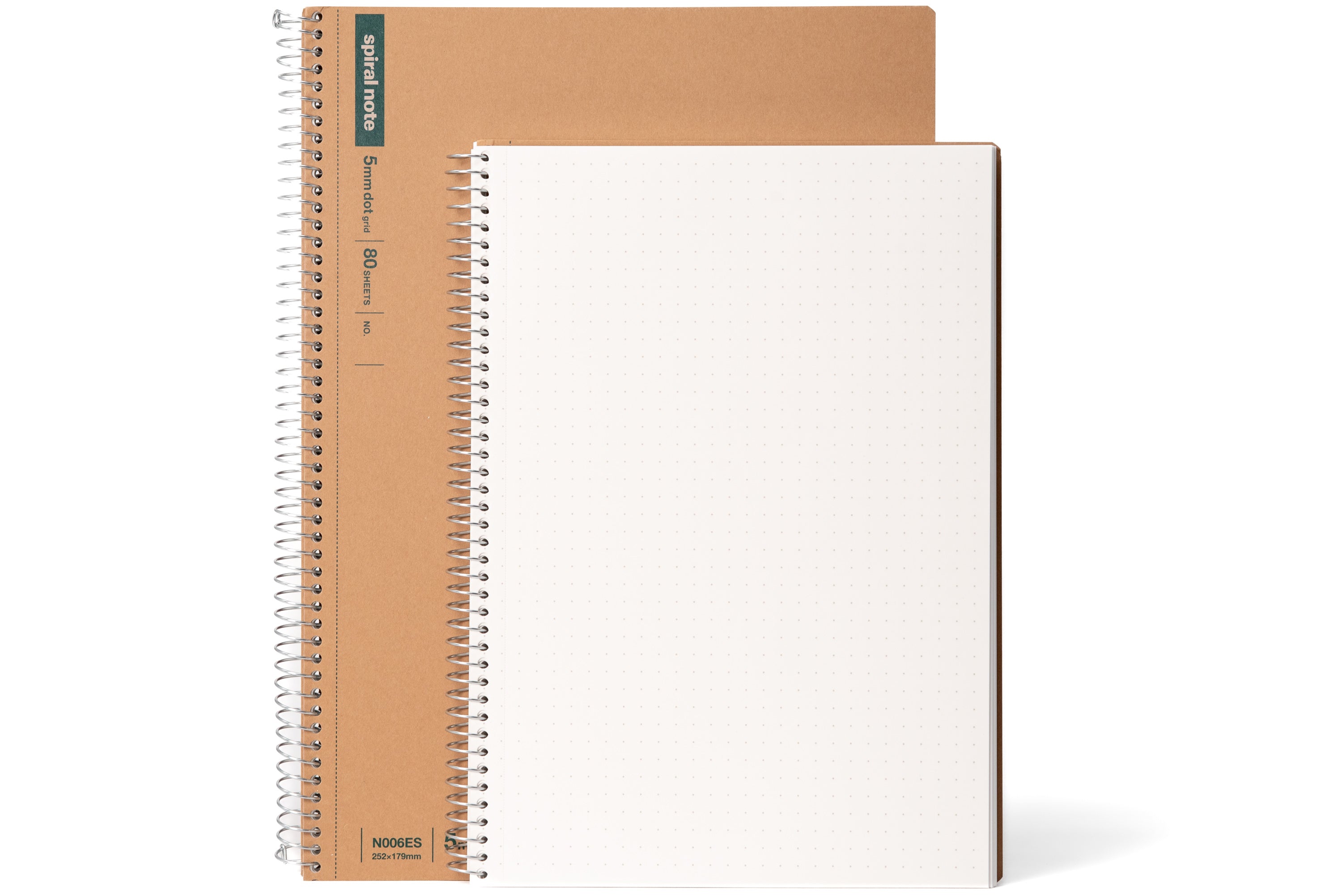 This dot grid Spiral Note 80 is available in A5 (5.8" x 8.3") or B5 (6.9" x 9.8") sizes. Also available in ruled, blank, and 5 mm grid formats.
