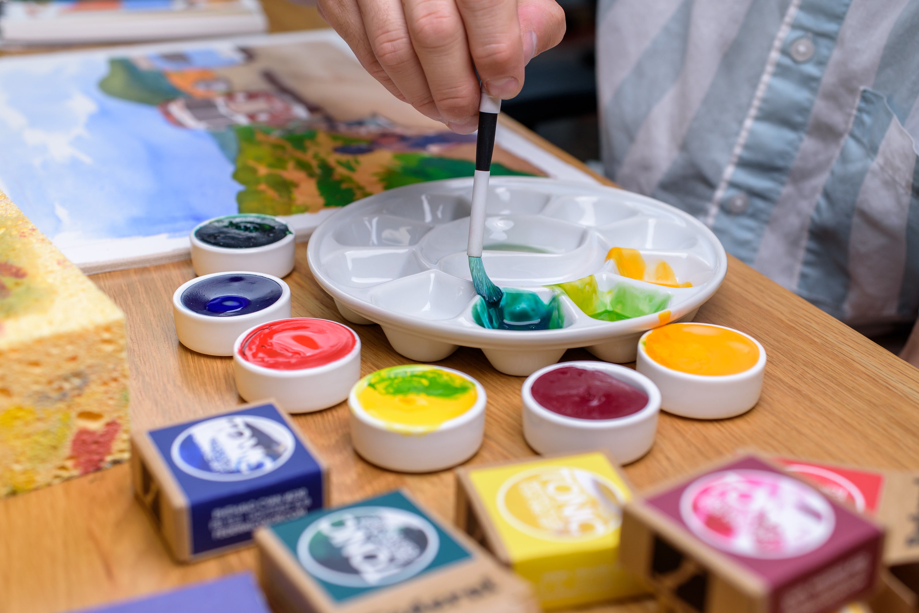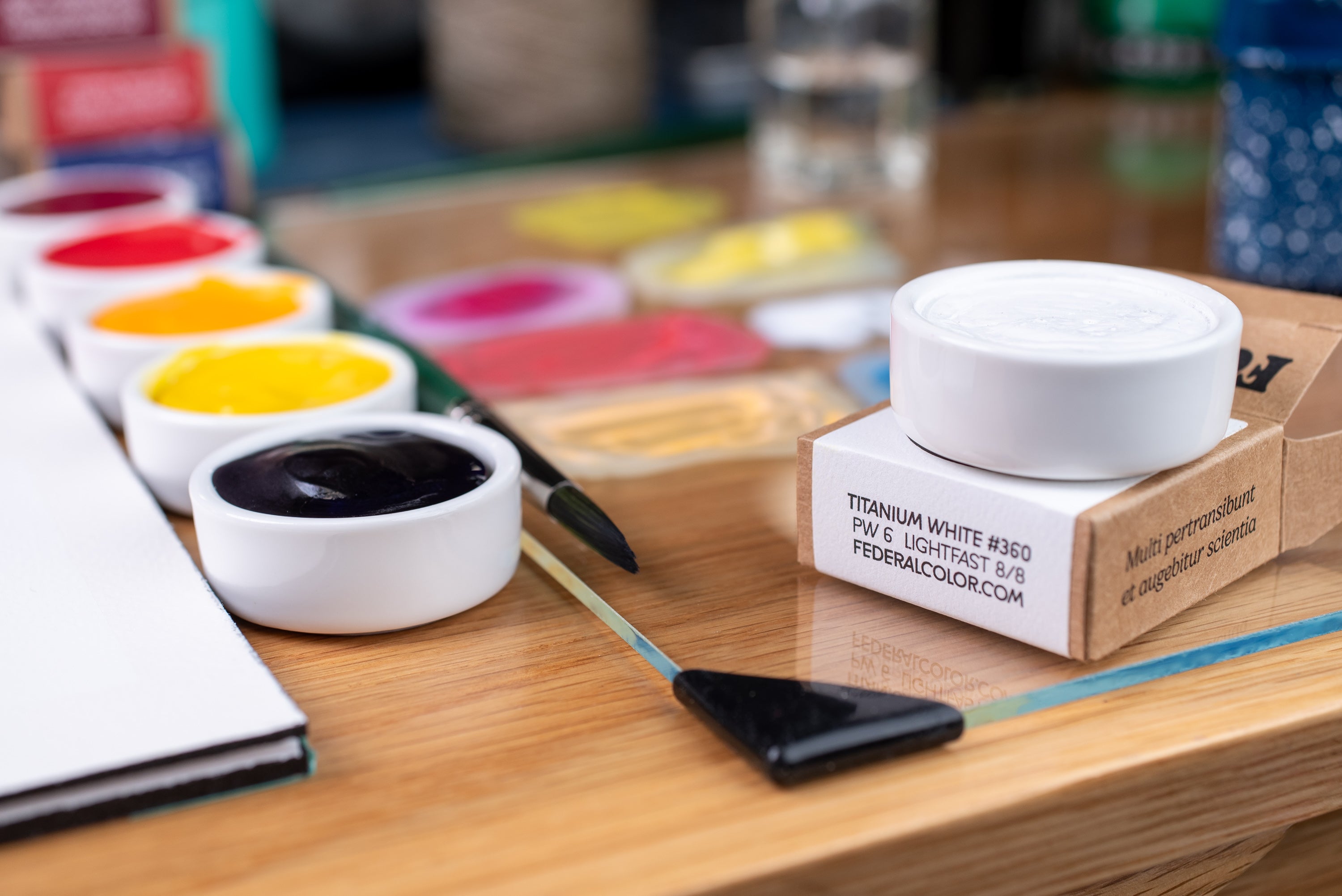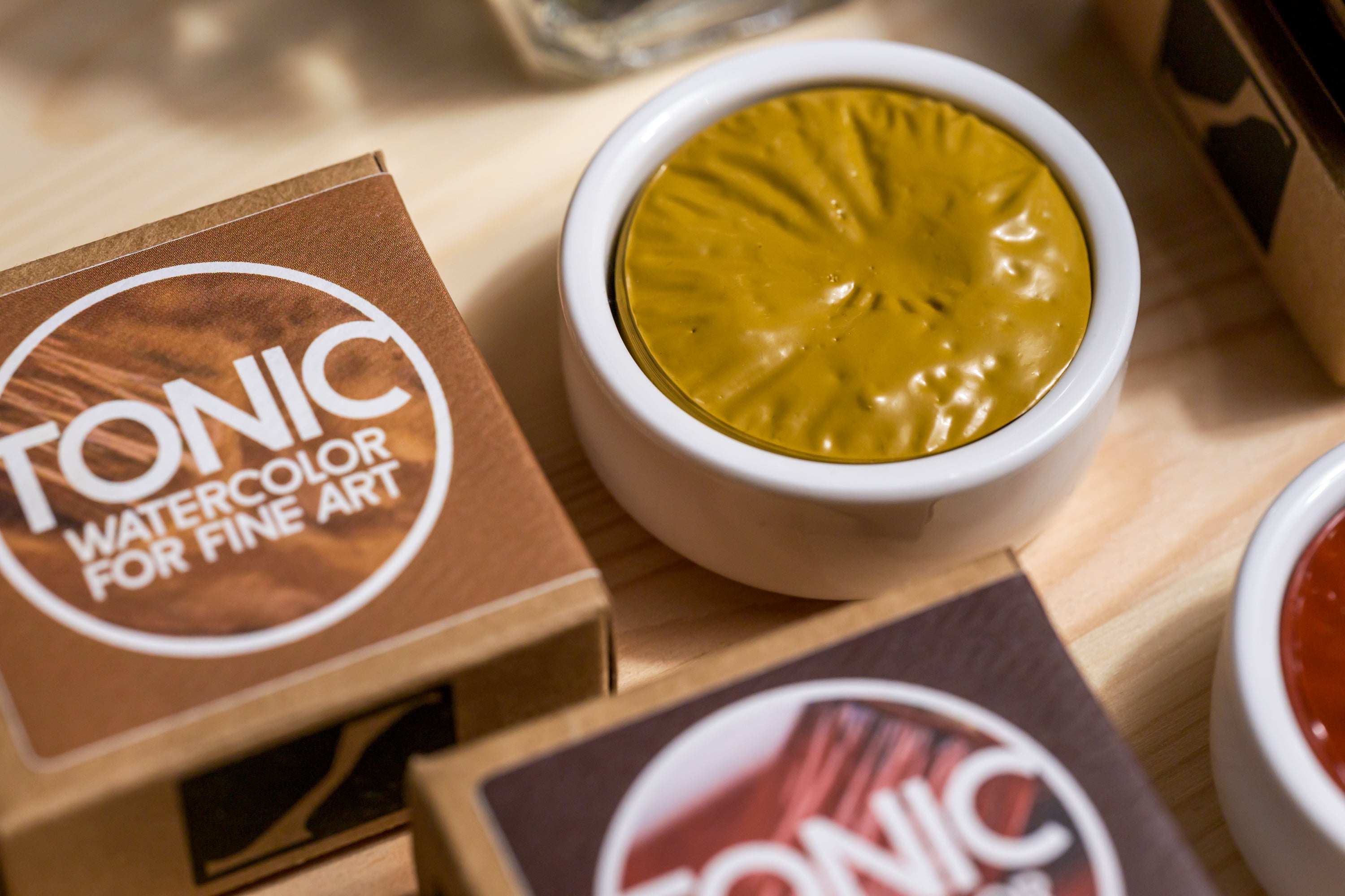 Tonic Watercolor is made right here in our St. Louis HQ, with a unique formula that we developed over two years of experimentation and research. We designed Tonic for maximum pigmentation, and you'll notice that a pan of Tonic is more concentrated than many other artist-grade watercolors.