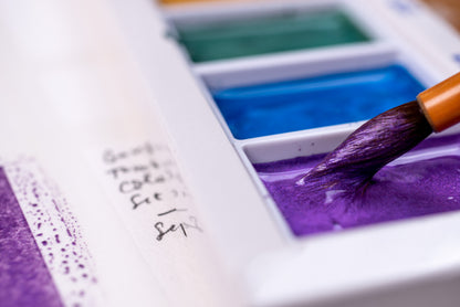 Kuretake Gansai Tambi watercolors are a perfect addition to any desk or studio. Japanese watercolors are more opaque than Western transparent colors, making them simpler to use and a more direct medium for quick sketches. If you need more transparency for a particular project, just add more water and Gansai Tambi can also create lighter washes.