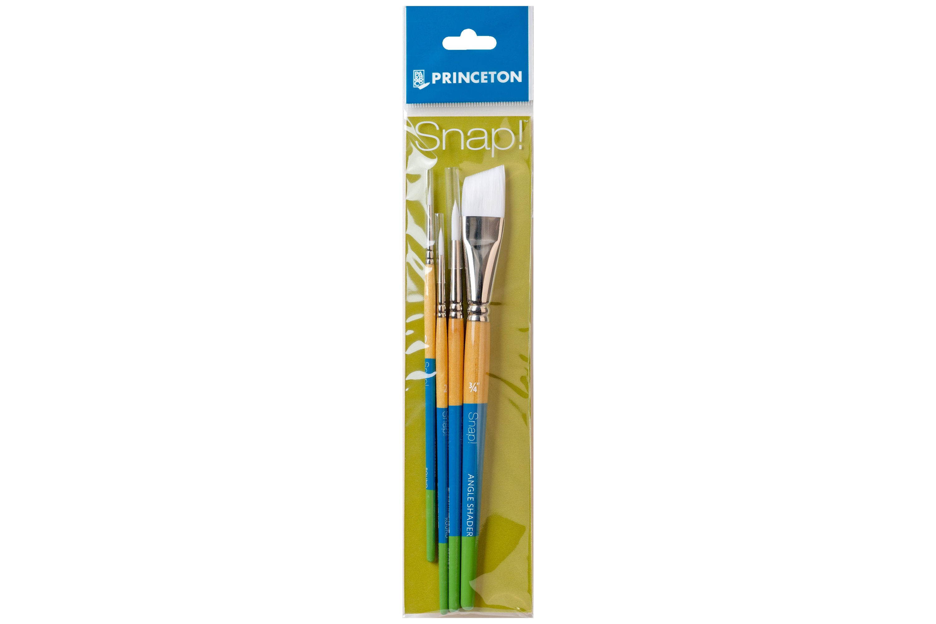 Princeton Snap brushes are an attractive, functional option for painters on a budget. These 9850 series acrylic brushes are made from a medium-soft white nylon fiber that holds a lot of paint and snaps back into its shape after use. The short handle is perfect for work on paper or small canvases. Available in single brushes or a four-brush set.