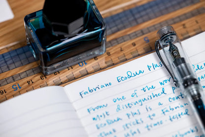 The paper used in this notebook is Fabriano Bioprima, a smooth and fountain pen friendly writing stock that's acid-free, chlorine-free, and suitable for long-term archival use. At 90 gsm in weight, it's opaque enough to use both sides of each sheet. The paper doesn't feather or bleed, and the pale ivory color complements your favorite inks nicely.