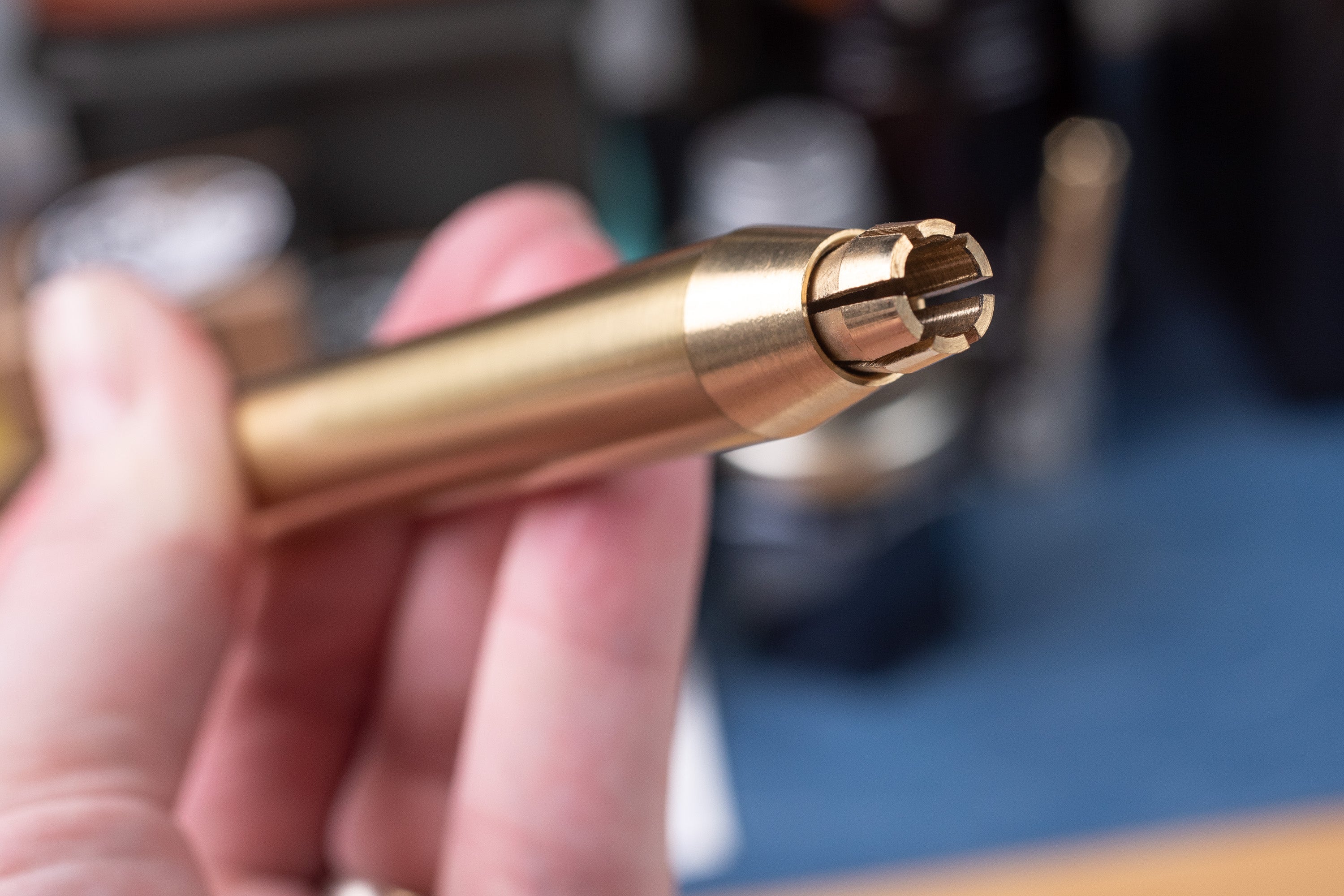 The Graphic 5.6 Clutch Pencil, from expert German manufacturers e+m, is a big and impressive tool for anyone who writes or draws. Fitted with an extremely sturdy, six-prong brass clutch, the Graphic 5.6 holds leads so securely that it looks like it's about to launch them into space.