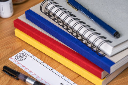 The covers are extra-thick, recycled pasteboard, and they extend a bit beyond the pages to protect your corners. The paper is 130 gsm, with subtle surface texture and an acid-free formula that can be stored indefinitely.