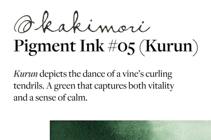 In use, Kakimori Pigment Ink is just as beautiful as it is in appearance and concept. Developed in partnership with Turner Colour Works, a leading Japanese paint and pigment manufacturer, this special ink is thick and saturated enough for dip pens and brushes, but smooth and fine-textured enough for use in fountain pens. Because it's pigmented, this ink is water-resistant and fadeproof when dry, but it has a slow drying time that allows lifting, blending, and reworking when used on watercolor paper.
