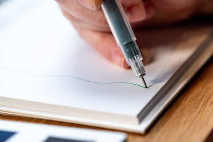 In our studio tests, we tried Kakimori Pigment Ink with fountain pens, brushes, liquid ink rollerballs, empty liner and brush markers, and Kakimori's unique dip pens. It worked perfectly in each application, creating deep, complex tones when used in thick layers and subtle, transparent tones when used with more restraint. In fountain pens, there's a pronounced shading effect, with deeper colors at the inkier end of your line.