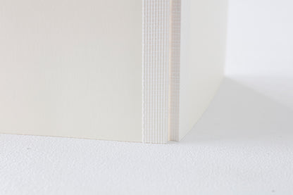 The iconic MD Notebook design does not come with a cover, inviting you to appreciate the color and texture of MD Paper. The cheesecloth mesh tape binding is attached to the spine, in plain sight. This stripped-down binding makes the notebook supple and easy to open flat. A cloth bookmark ribbon peeks out from the white cheesecloth binding, adding a modest accent.