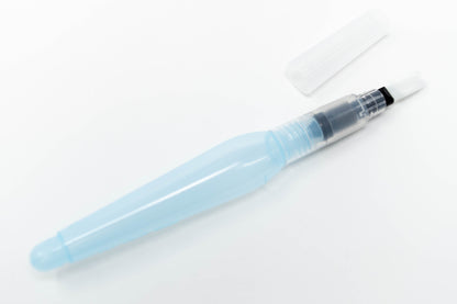 Pentel's Vistage water brushes (you may know them as "Aquash," the alternate name used on packaging intended for the U.S. market) are our secret weapon when working with water-based media like watercolor, ink, and gouache. Unscrew the reservoir and fill it with water. Screw the pen back together and squeeze; water quickly saturates the synthetic brush tip. The water will flow automatically while you paint, keeping the brush wet, and you can squeeze the barrel for extra flow.