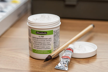 Schmincke AQUA Modeling Paste is a texture medium for watercolors and water-based pigment inks. It's capable of effects normally associated with acrylics, but with the special beauty and versatile working characteristics of watercolor.