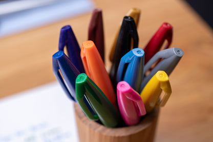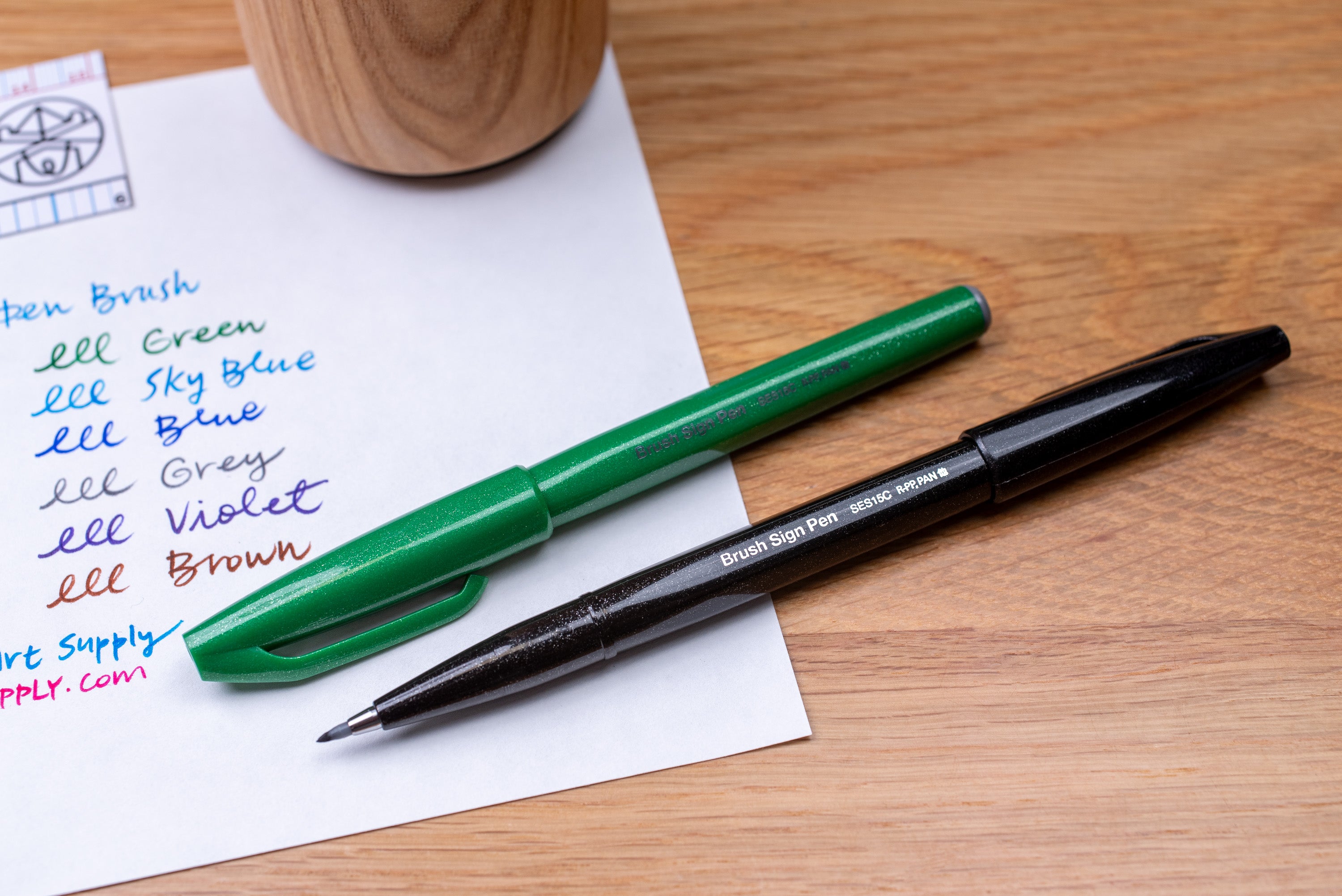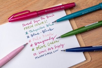 Artists and calligraphers have loved Pentel Sign Pen Brush for generations. This flexible, fiber-tipped pen is firm enough for general writing, but soft enough for calligraphic strokes and dynamic drawing. Illustration and cartooning are two of the most popular uses for Sign Pens, because the tip can do anything from a fine cross-hatch to a big, bold stroke.