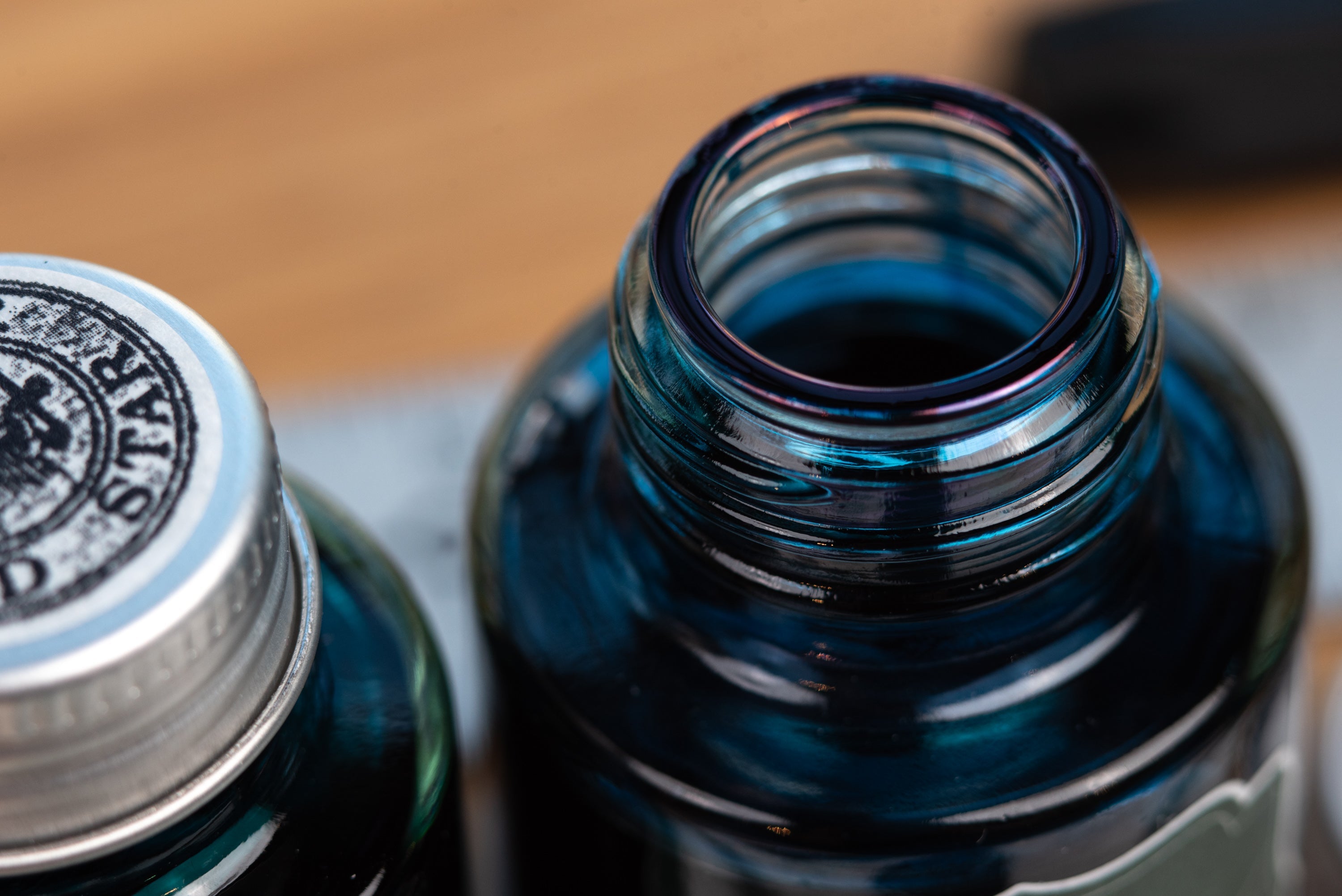 In our tests, we loved the handling, flow, and color of Taisho Roman inks. They worked just as we expected with a variety of nibs and brushes, and once applied, they surprised us with their dynamic look and feel. In heavy applications, there's a definite sheen on some colors (especially Lady Emerald and Melancholic Blue), and even with regular fountain pens, there are dramatic shading effects.