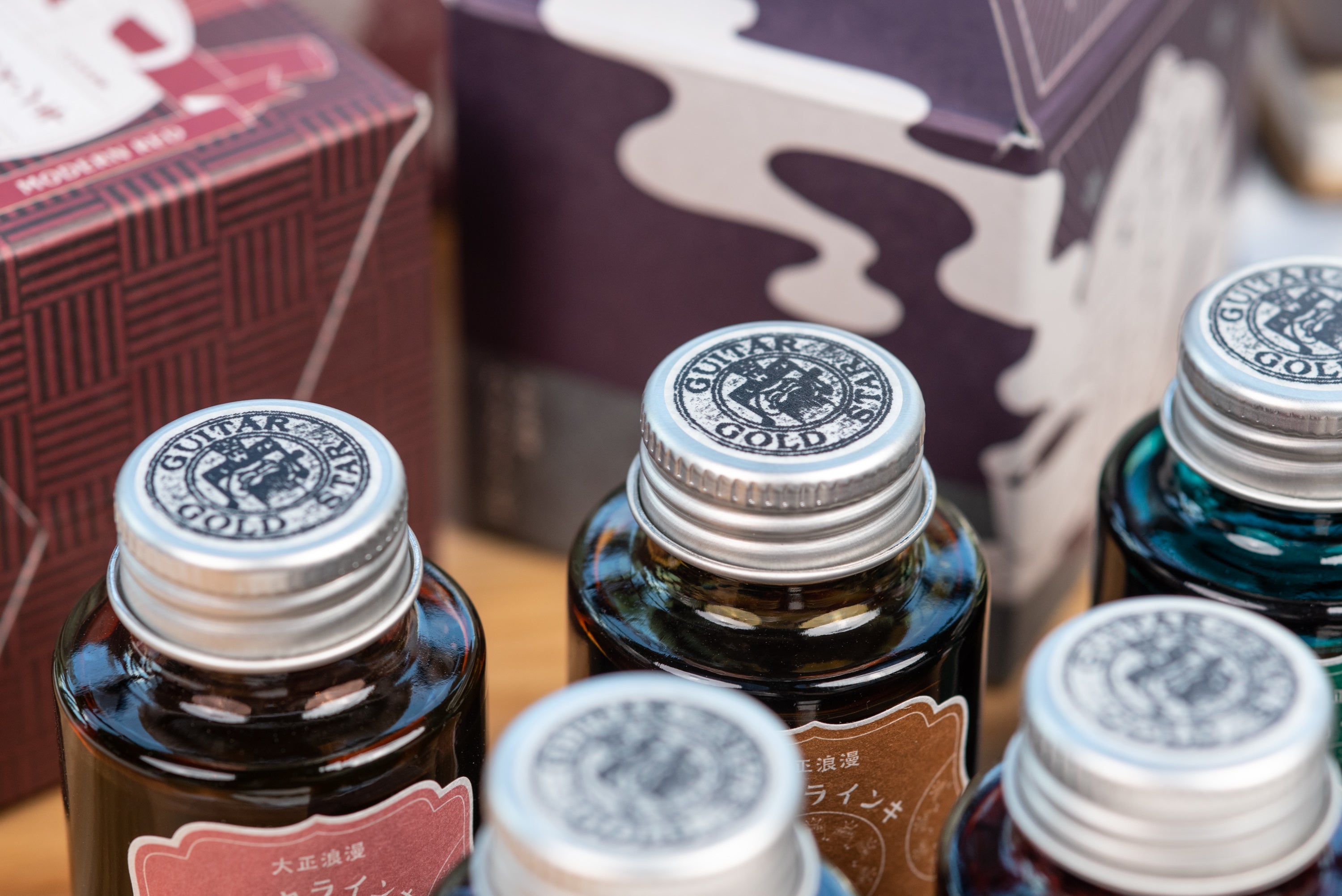 Both Teranishi and its Guitar Brand have endured for over a century, from the optimism of the Taisho period through the turmoil of war and the development of Japan as a major economic and cultural power. These inks, first introduced in 2021, offer a look back at a special moment in Japanese history, significant not only for this manufacturer but for the country as a whole. Each one is inspired by the fashions of Taisho Roman Japan, with stylish, showy colors that make a bold statement.